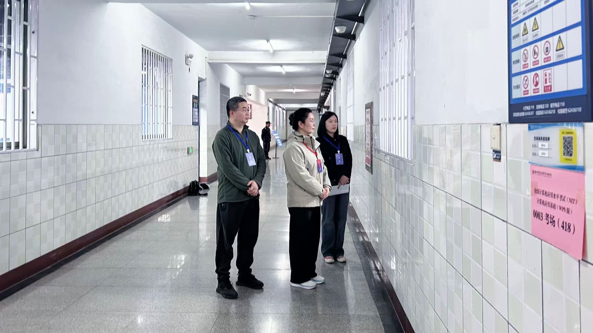 考试当天,各项组织工作严密周到、流程清晰。考生在工作人员引导下,有序完成身份核验、安检入场及签到等环节。考试过程中,监考教师严格执行考试纪律,确保了考场的公平与秩序;技术人员在场及时处理突发状况,保障了考试系统的稳定运行;考务、安保及后勤人员也坚守岗位、密切配合,共同维护了考点内外的良好秩序,确保了整场考试从开考到结束的各个环节衔接顺畅、运行平稳。