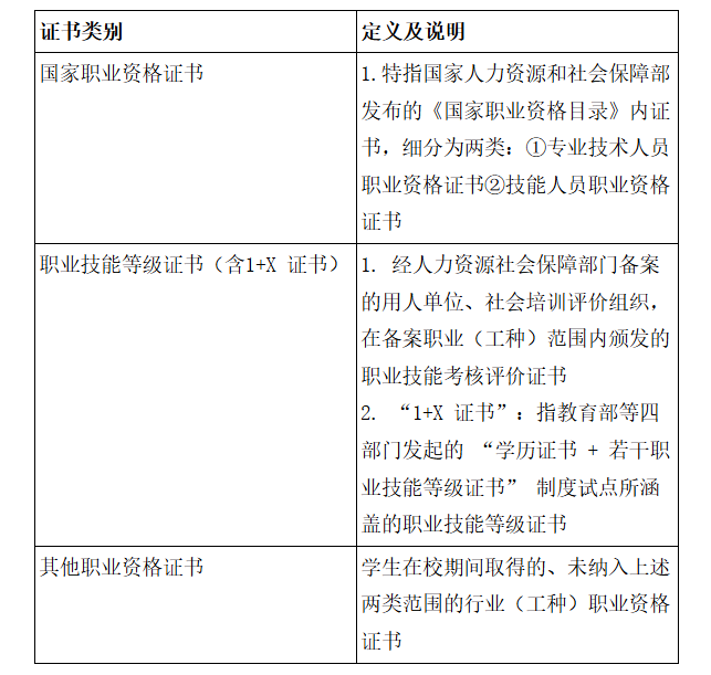 本次统计覆盖全体2026届毕业生在2025年6月1日之后获得的各级各类职业资格证书,共分为三大类(类别间互相独立、无交叉重叠),具体如下: